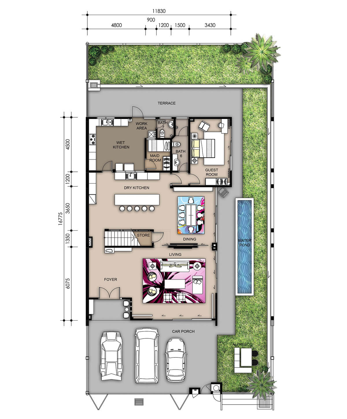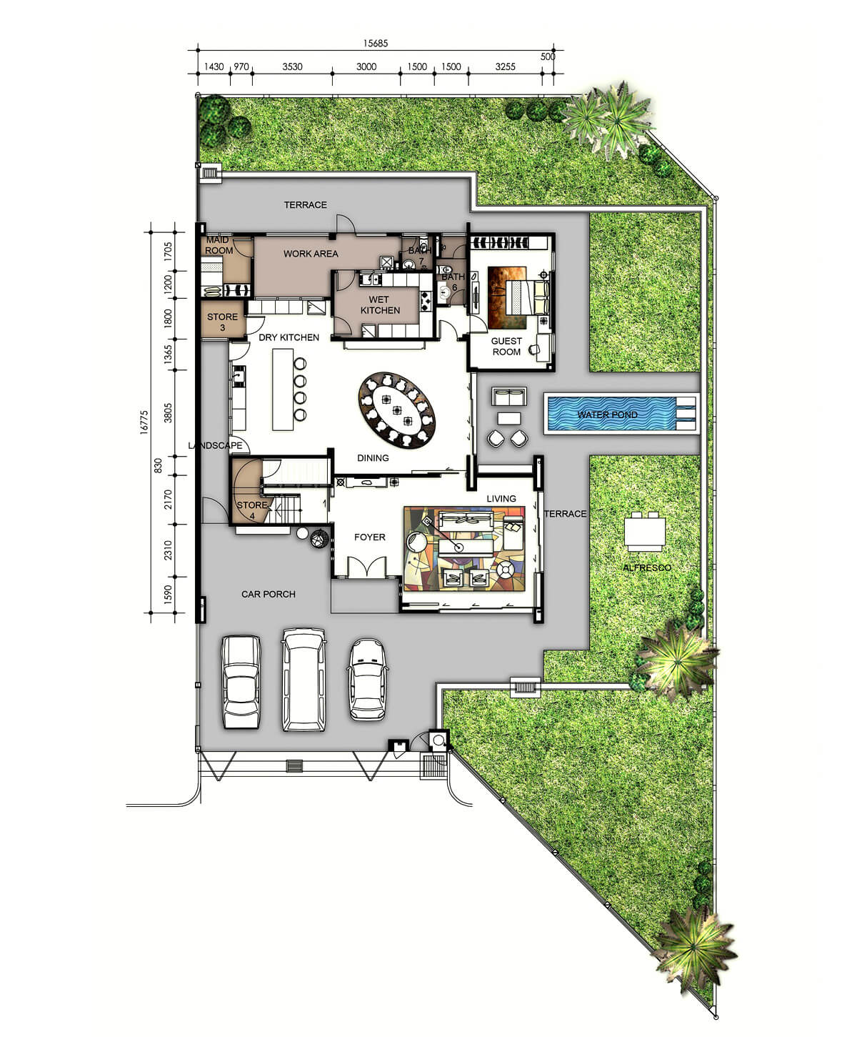 From majestic halls to large rooms and sprawling gardens with calming water features - immerse in the sheer wealth of space. At over 6,000 sq. ft. per unit, the villas here are the largest of its kind in Petaling Jaya, promising an unparalleled quality of life.